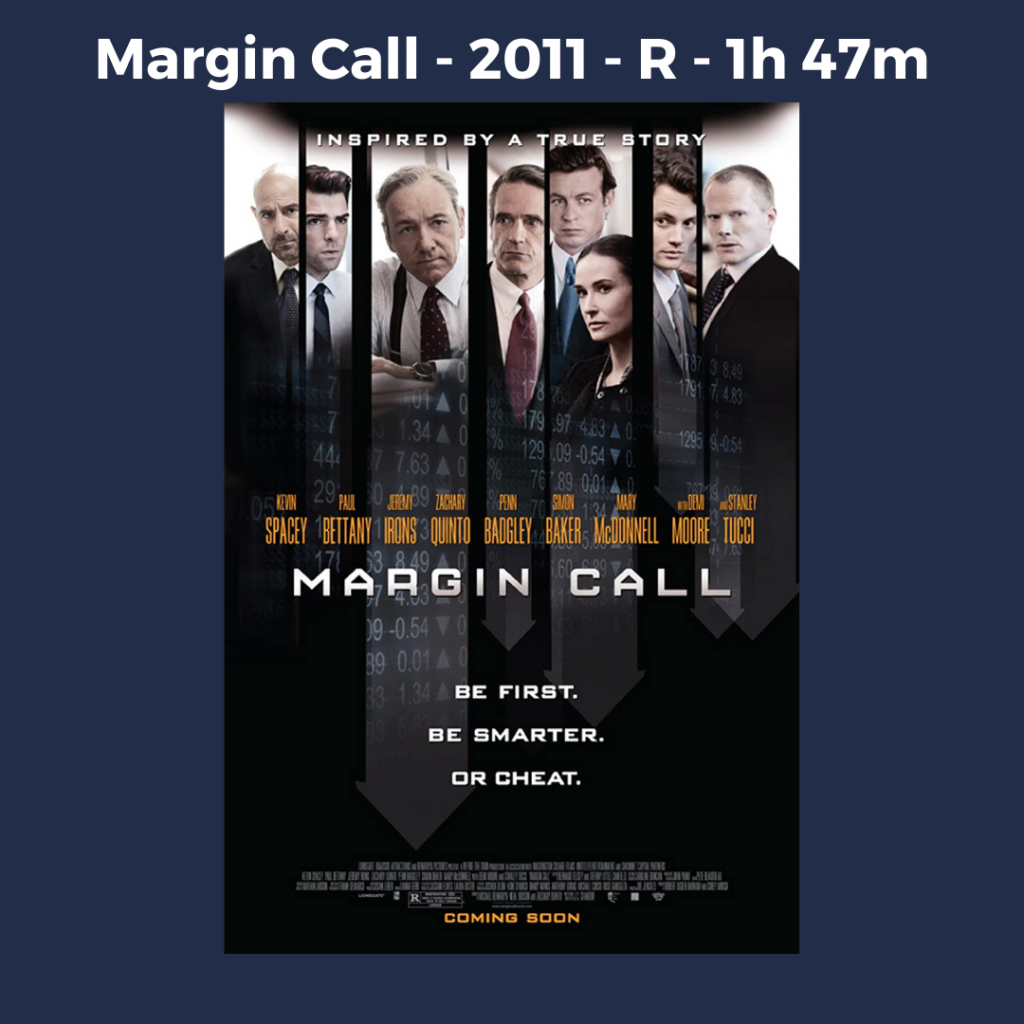 Summary: This biographical drama centered around Treasury Secretary Hank Paulson showcases the relationship between the private sector and the government. Written by Aaron Sorkin, a brilliant film that bio’s a list of very notable politicians and CEOs. Follow Richard Fuld at Lehman Brothers, Ben Bernanke of the Federal Reserve, Tim Geithner of the New York Fed, Warren Buffet of Berkshire Hathaway, and other US and British regulators as they struggle to keep the world economy afloat.