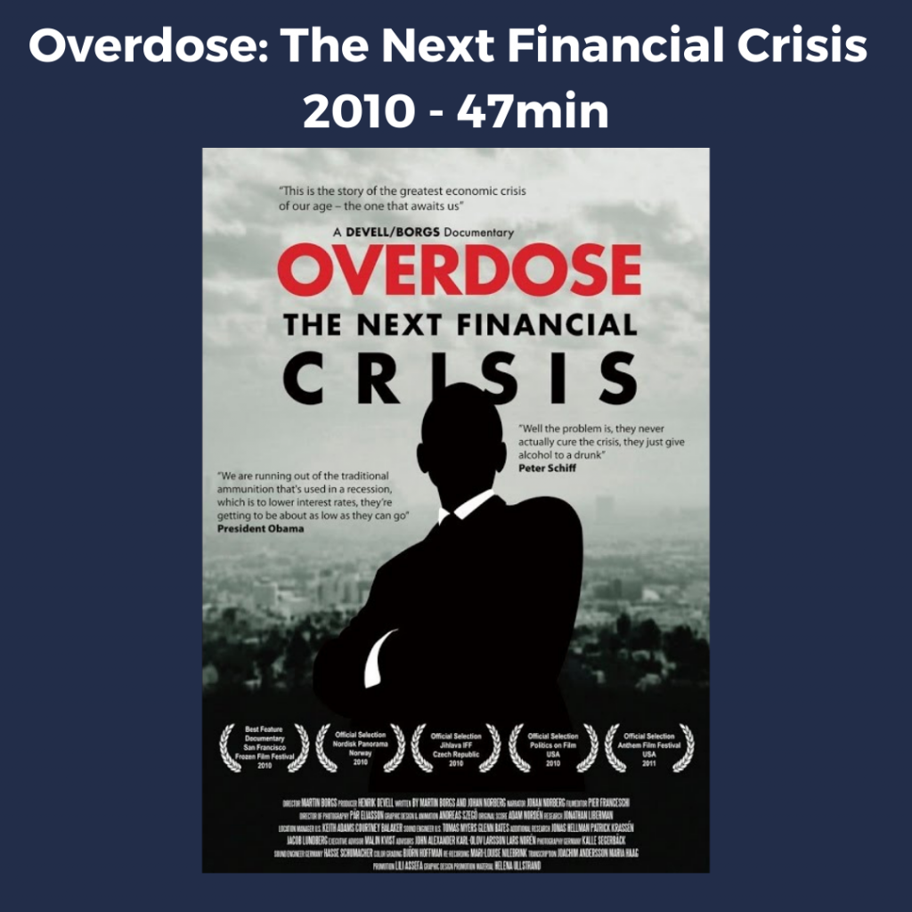 Summary: A short documentary and commentary post the great recession. This film is littered with individuals who predicted the housing bubble and forecasted a warning of the next financial crisis that could be near. This is a great watch if you watch Inside Job as it gives a different cause and effect relationship to the crisis and the best long-term solution.